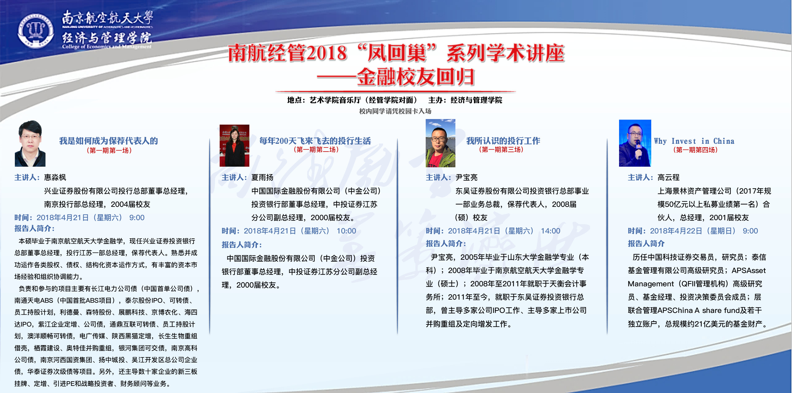 南航经管2018“凤回巢”系列学术讲座———金融校友论坛(第一期共4场)