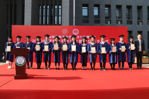 真挚感人的毕业典礼后,进行了庄严的学位授予仪式,学院学位委员会的导师们在权杖入场的欢呼声中走上舞台。首先,王英宣读了《关于颁发南航p站 2019届研究生毕业生毕业证书、学位证书的决定》,随后在学术权杖见证下,在全场老师、家长、同学的注视下,毕业生们骄傲地走过红地毯,从师长手中接过了学位证书,完成了人生中这一重要时刻,并留下一张张珍贵的合影。