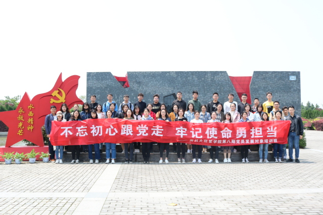 4月27日,p站 开展“不忘初心跟党走,牢记使命勇担当”主题二级党校培训课程暨青马工程团日活动,70余名党员发展对象、青马工程培训班学员前往南航天目湖校区、新四军江南指挥部纪念馆参观学习,了解学校发展、追忆革命先烈,辅导员康冲、朱一豪一同参加了本次活动。
