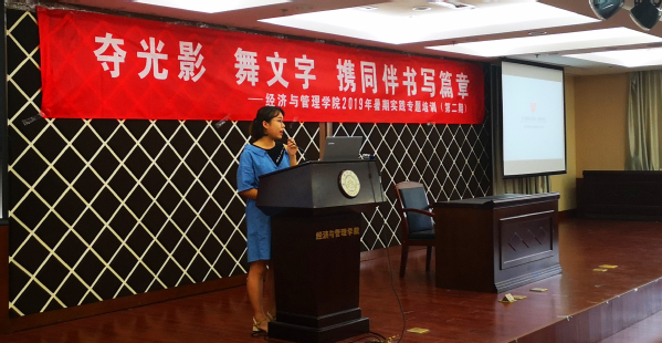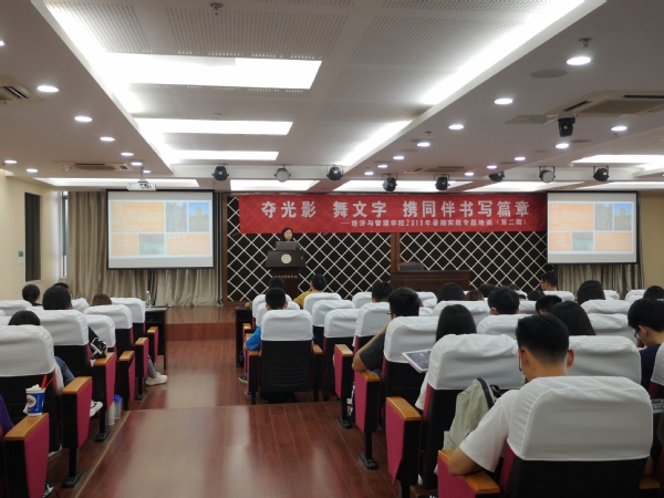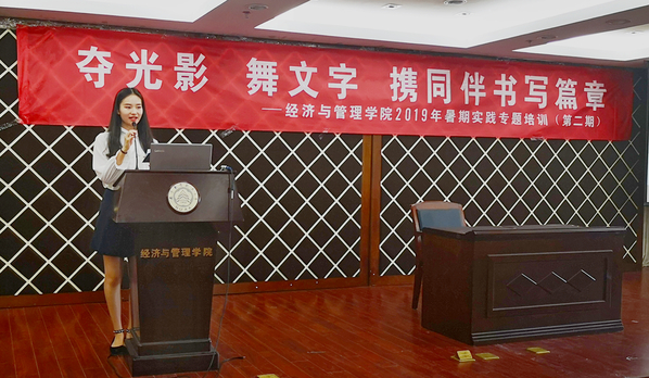 6月12号下午,"夺光影 舞文字 携同伴书写篇章"p站 第二期暑期社会实践专题培训在经管楼A0305报告厅顺利举办。学院宣传员时云、2016级辅导员朱一豪、院新媒体中心邵丹惠分别就摄影摄像、团队运营和新闻撰写开展了专题培训,学院团委书记庞依达和近两百余名社会实践项目负责人参加此次培训。
