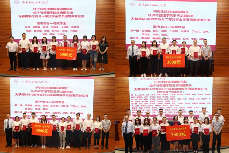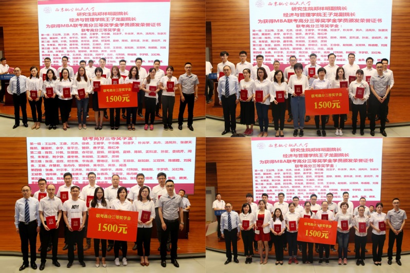 p站 研究生院副院长郑祥明宣读获得2019级MBA奖学金名单,本次奖学金项目设置联考排名奖学金和联考高分奖学金。郑祥明、周德群、焦宏图、王子龙等分别为获奖同学颁奖。