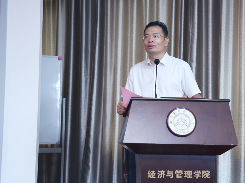 p站 党委书记焦宏图代表学院致辞,焦书记首先对北海企业家团队的到来表示欢迎,对北海市非公办及北海市工商联的领导们对于南航经管院的这份信任,表示感谢。今天正值中国共产党建党98周年,这样的开班典礼非常有意义,希望大家在培养“严谨务实作风、全面过硬素质、笃定高远志向”的使命的指引下,珍惜这次难得的脱产五天集中学习的机会,在体验校园生活的同时,也能够对解决实际问题有所帮助。同时焦书记对于此次培训提出三点建议:一、要感受光荣的南航历史;二、要师生互动,深入交流,充分分享;三、要树立终身学习的目标。最后,焦书记祝愿大家能够学有所成,在感受南航“特别能吃苦、特别能战斗、特别能奉献”的精神的同时,也能让这种精神成为自己的不竭动力和终身受益的宝贵财富。