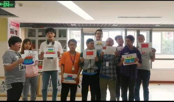 活动最后,学员们一起举着自己亲手画的画说着“祝祖国母亲七十岁生日快乐”。现场活动虽然结束了,但社会对自闭症患者的关爱不会停止,宁馨自闭症学员对祖国浓浓的爱也不会熄灭。
