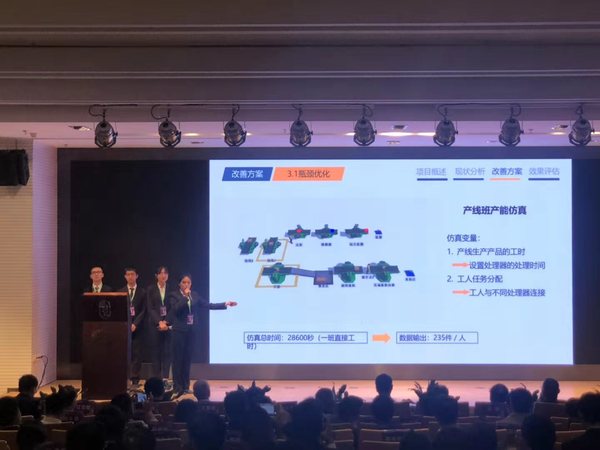 本届赛事中,p站 所有获奖作品均来源于学院暑期开展的“军演式”实习项目。一等奖项目以D公司电机生产制造为例,对其进行产线物流集成优化研究。我们将产线平衡作为首要改善点,从多角度进行瓶颈优化,并通过换模改善提升时间利用率。此外,从ECRS工作优化、布局规划两方面入手,通过提升物流效率保证产线的高效生产。最后形成一套产线物流集成化综合解决方案,取得了显著成果,大大提高了企业效益。