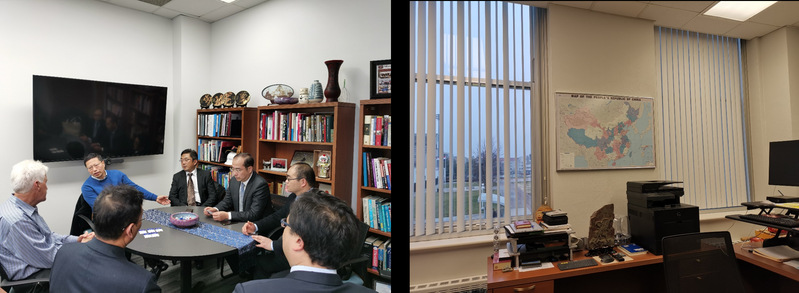 密苏里州立大学主管经济研究与发展和国际合作项目副校长Dr.James Baker在其富有明显“中国特色”的办公室会见了代表团一行。在会见与交流中,他深情回顾了与中国高校合作办学的渊源,对中国的地区如数家珍,他是中国人民的老朋友,多年来持续推动与中国大学与地方的合作,他于2012年获得中国政府友谊奖。在他的办公室随处可见中国文化元素,包括中国地图、中国瓷器、中国画、中国结等。代表团成员与James Baker副校长深入交流了MBA项目合作、师生交流等相关议题,双方一致认为两校之间应把握良好契机,增进交流合作,建立长期稳定的合作关系。