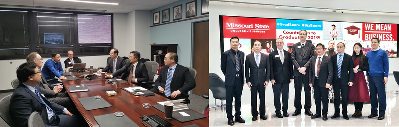 密苏里州立大学校长DR.Clif Smart、教务长Dr.Frank Einhellig、副校长Dr.James Baker、商学院院长Dr.David Meinert、副院长Dr.Kent Rgan热情接待了代表团一行。
