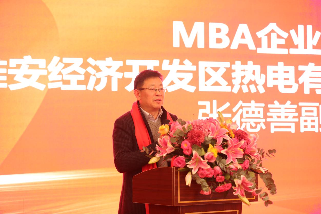 南航MBA企业导师代表张德善先生随后发言,他代表淮安经济技术开发区商会和企业对MBA校友会淮安分会的成立表示热烈的祝贺和美好的祝愿,感谢南航搭建的平台,为苏北发展输送了大量人才。