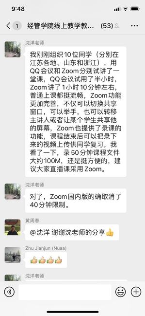 8点,p站 院长周德群在线进入18级国贸专业本科生《国际贸易原理》的线上课堂。袁潮清老师已经在zoom平台中开始了课程导论的讲解。周德群院长参加了课堂的学习并借机对该课堂的老师和同学们表示慰问和关心,鼓励大家高效利用线上教学资源,提升自主学习效率,并希望大家在多种平台使用期间,关注并反馈体验心得,为将来线上线下教学融合奠定基础。