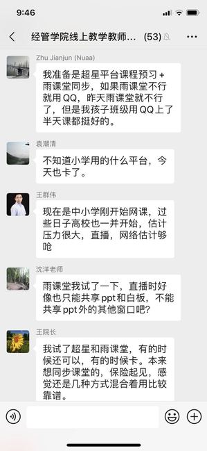 为了迎接2月24日学校统一部署的线上学习,早在2周前,学院组织教师及时收看各种教学平台的使用说明直播课,邀请经验丰富的教师发布平台使用心得及说明,老师们则在群内针对平台使用、学习方式选择进行了讨论和交流。老师们根据课程教学计划及具体授课的要求,在对超星、爱课程、雨课堂、腾讯课堂、zoom、welink等线上教学资源及会议工具进行对比后,选用适合自己的教学指导模式搭建课程平台,并提前建好课程班级线上交流群,开展试讲或模拟课堂等。考虑到可能出现的网络故障以及部分学生设备限制等问题,老师们同时还建立课程公共邮箱,提前上传了课程录播视频、教材资源以及作业任务等,以保证线上学习活动的正常开展。
