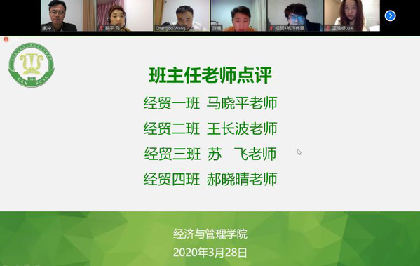 各班班主任纷纷肯定了班干部上学期扎实开展的各项工作对新生行为习惯养成、班风学风建设的积极作用,并进行了点评和指导:陆彪希望同学们充分认识到线上教学的特殊性,班干部应严把线上学习质量关,将线上课堂纪律及各项要求落到实处;王长波认为班干部工作热情、卓有成效,应在进一步助推班风建设及专业素养提升上下功夫;马晓平则从各个科目的成绩情况展开,分析了本学期的学习要点与高年级课程的关联,让同学们了解经管、提前谋划、积极准备。