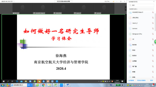 举办了题为“如何做好一名研究生导师”的主题讲座。为了响应学校立德树人的育人目标,养成和谐健康的导学关系,本次讲座特意邀请两位校“五好导师团队”获得者,学院特聘教授、全国优秀教师刘思峰教授及学院教授委员会主席徐海燕老师分别就研究生导师责任和导学关系建设进行分享,讲座由学院分管研究生教学副院长谢乃明主持,共40多位教师参与了线上讲座。