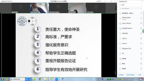 刘思峰老师首先从导师的角色定位出发,强调导师应该成为研究团队的领导者、学科前沿的引路人、学术训练的教练员以及科学精神的示范者,明确自身责任与使命;在学生培养过程中,要对学生高标准、严要求,同时也要珍视师生关系,实现良性互动;在具体科研指导过程中,要从创新性、重要性的角度帮助学生正确选题,重视开题报告论证,同时注重团队培养,指导学生有效开展科学研究。