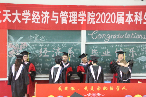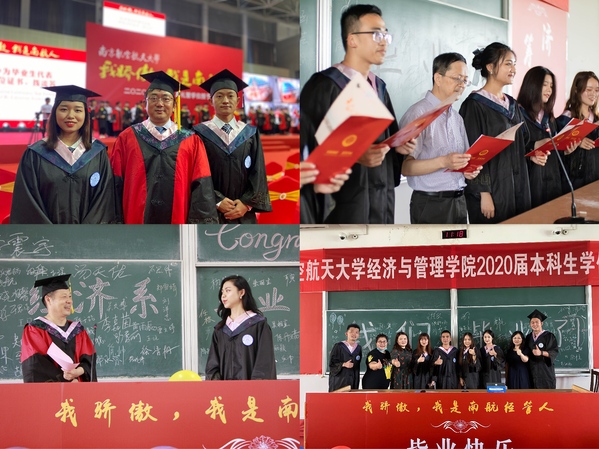 6月24日上午,p站 举行“我骄傲,我是南航经管人”2020届本科生毕业典礼暨学位授予仪式,管工系、工商系、经济系分别开展了丰富多彩的欢送活动,为全体2020届本科毕业生的大学生涯画下圆满句号,全体院领导、各系主任、副主任、30余名学院教师代表、辅导员等共同参加了各系欢送活动。