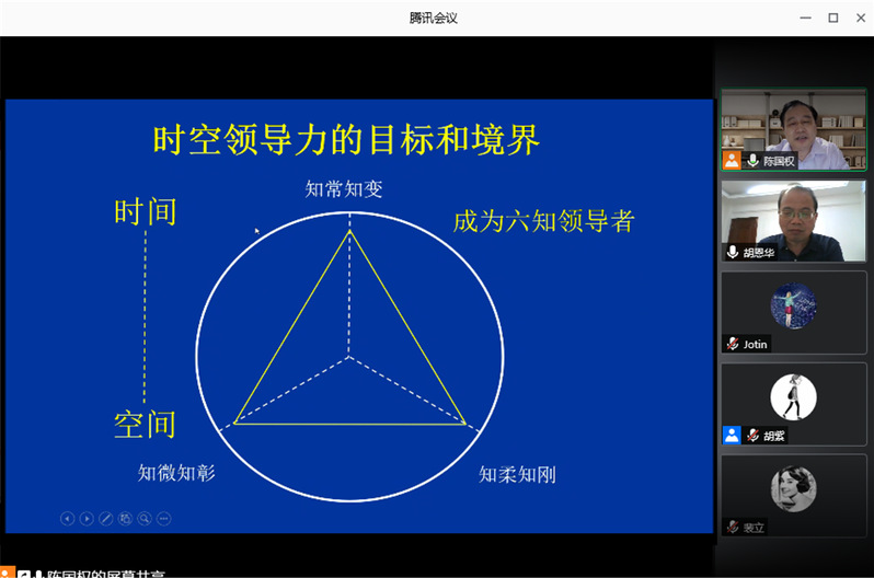7月5日,清华大学经济管理学院教授陈国权应p站 人力资源管理研究所和江苏省人力资源发展研究基地的邀请,在线上为我校师生作了一场“时空领导力”的精彩学术报告。报告由教授胡恩华主持,教授刘思峰、陈万明、冯绍红、年轻教师、博士研究生、硕士研究生等两百余人参加了本次学术讲座。