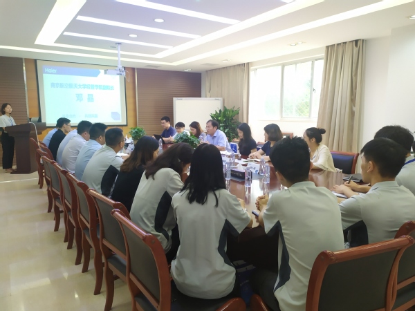 管毓贤首先对p站 一行的到来表示欢迎,并向大家介绍了海尔合肥公司的基本概况、经营内容、发展态势以及南航毕业生、实习生在海尔公司的发展情况。他指出,海尔集团作为国内电器行业的领军企业,双方在产学研合作、人才培养等方面大有可为。
