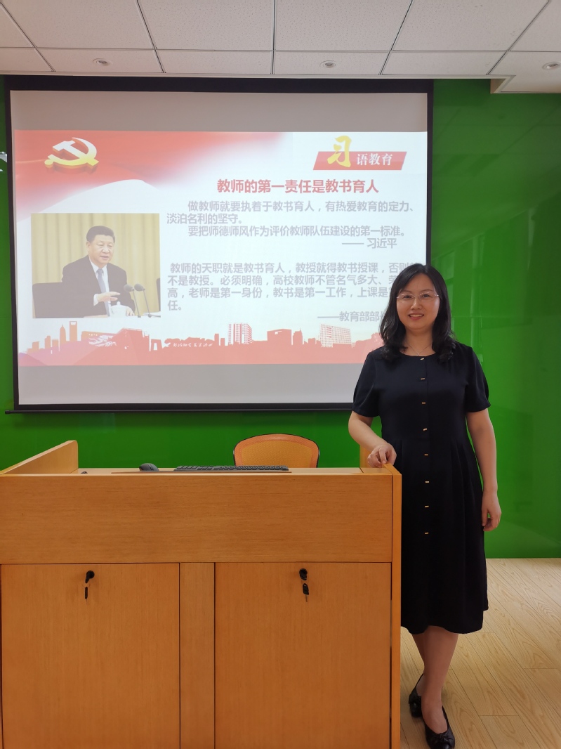 焦宏图书记首先解读了《中共p站 委员会关于加强和改进教师思想政治工作的意见》和《p站 教职工师德“一票否决”实施办法(试行)》这两个文件,向各位老师明确了党和国家对于教师的宏观要求,又从学校发展实际及教师发展需求的角度,阐明了加强和改进教师思想政治工作的重要性和必要性;接着,她在解读教职工职业行为准则的基础上,又介绍了学校教师职业道德考核、教师培训体系、教师荣誉体系等建设现状。