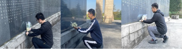 随后,全体同学瞻仰了抗日航空烈士纪念碑,深切缅怀在抗日战争中为了抵御外敌入侵而英勇献身的航空英烈们,本科生第一党支部的学生代表们怀着崇敬的心情向烈士们献上了寄托哀思、象征和平的菊花,他们表示:“虽然这些空军英雄大部分没有留下生平事迹,甚至没有留下他们的相貌,但是就像历史上所有英雄一样,他们将永远被后人缅怀。身为南航学子的我们,应接过先辈们的火炬,不断加强政治理论和专业知识的学习,担负起历史赋予的责任,为我国航空事业的发展贡献自己的一份力量。”