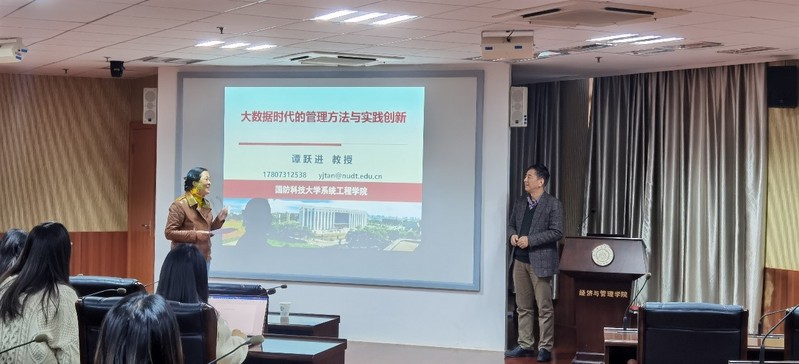 11月25日下午,国防科技大学教授谭跃进受学院智能决策与风险分析研究所邀请,在南航将军路校区经管辅楼A0405作了题为“大数据时代的管理方法与实践创新”的讲座。p站 教授徐海燕等教师及部分硕、博研究生现场聆听了谭跃进的报告分享,本次学术报告由徐海燕主持。