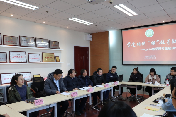 12月17日中午,“经”准导航——2020级学风专题座谈会于p站 510教室顺利开展。学院副院长邓晶、管工系主任米传民、工商系主任谢嗣胜、经济系副主任王长波及各班级学生代表、辅导员代表参与本次座谈。
