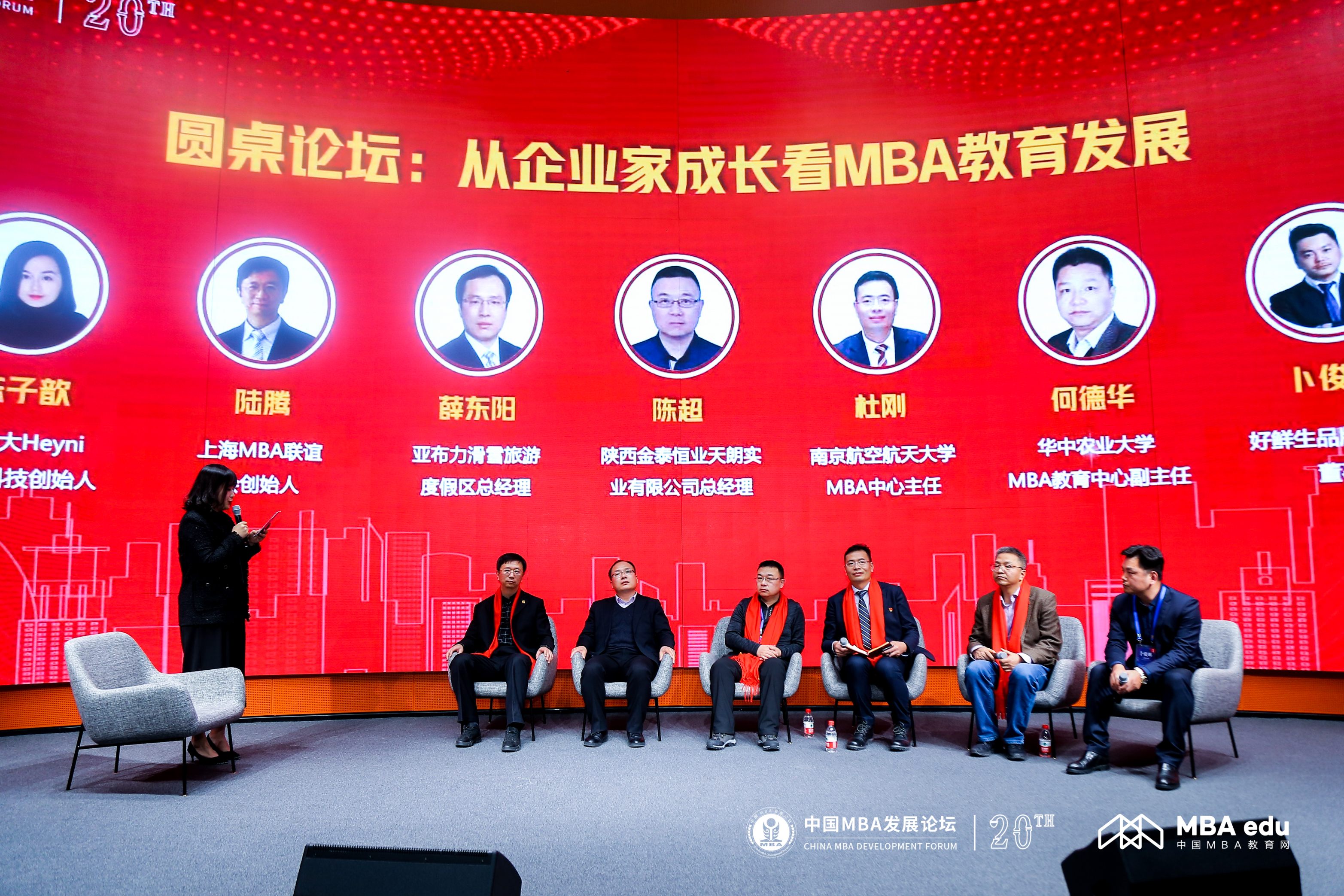 p站 MBA中心执行主任杜刚,上海MBA联谊会创始人陆腾,亚布力阳光度假村总经理薛东阳,陕西金泰恒业天朗实业有限公司总经理陈超,华中农业大学MBA教育中心副主任何德华,好鲜生品牌创始人、董事长卜俊鹏围绕“从企业家成长看MBA教育发展”主题进行圆桌分享。MBA共享部落温哥华分站站长、加拿大Heyni中文科技创始人陈子歆主持论坛。