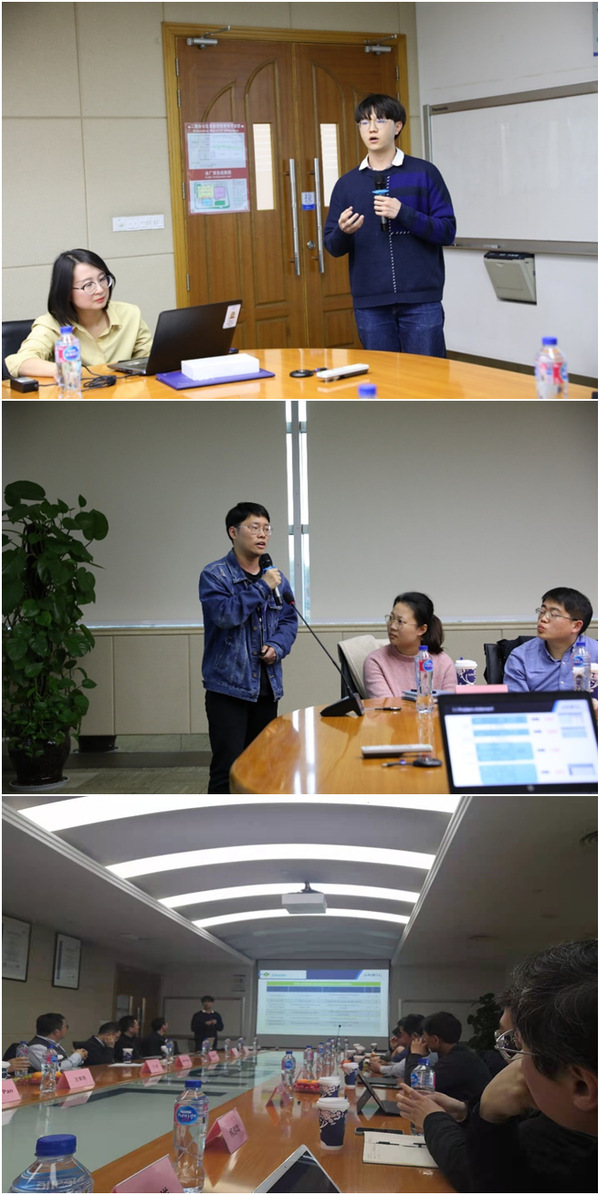 揭幕仪式后,p站 在捷普电子实习生代表章恒、邓渊泽和陈舒展分别就其在捷普电子实习的成果向与会的专家领导作了题为“Establishment of WIP Prediction Model(基于神经网络的在制品库存预测模型)”、“Shipping in time_systematic lean analysis(基于系统精益分析的即时发货项目)”、“Middle build plan based on GA(基于遗传算法的中端计划排产)”汇报。