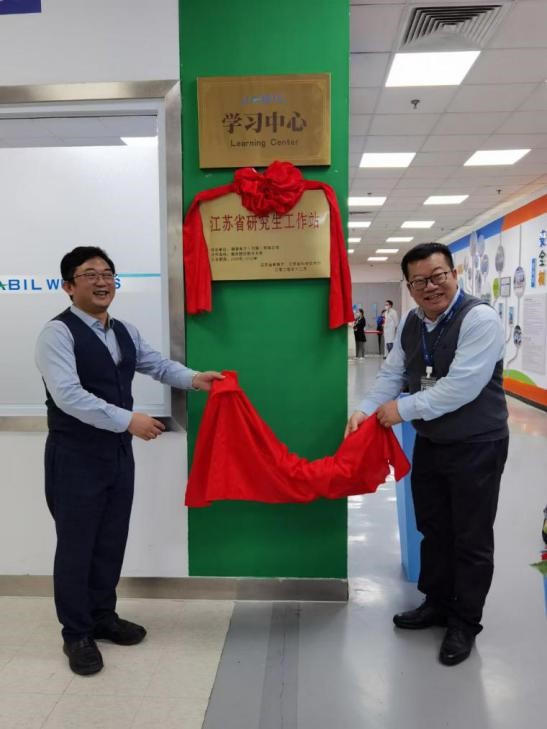 周德群和舒鹏共同为“江苏省研究生工作站”揭牌。这是p站 校企合作的第一家研究生工作站,标志着p站 与捷普电子(无锡)有限公司在校企协同育人工作平台建设方面迈向了一个新的台阶。