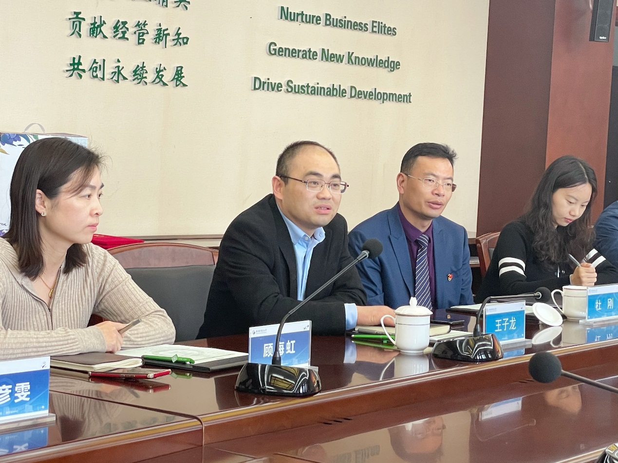 王子龙副院长首先对王国斌秘书长一行莅临南航p站 表示热烈欢迎,重点介绍了学院发展历程、学科专业、科研机构和师资队伍等。王子龙副院长表示,南航p站 学科特色鲜明、实力雄厚,通过30多年的发展,已经形成以特色优势学科管理科学与工程为牵引、经济与工商管理学科有序发展的“一体两翼”格局,学科专业影响力不断扩大。在教育部第四轮学科评估中,p站 管理科学与工程学科进入全国A-档行列,位居全国前5.3%,排位前10;工商管理学科进入全国B档行列,位居全国前20%,排位前50。依托学院工科背景,南航MBA项目一直秉承“凝聚特色、差异发展;瞄准需求、服务地方”的理念,以南京为中心,深耕江苏,服务长三角,辐射全国,品牌知名度和美誉度不断提升。