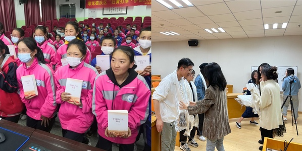活动中,p站 还向堆龙中学赠送了30本《中国共产党简史》书籍,帮助同学们更加丰富全面地学习党史。活动的最后,宁藏两地进行了献哈达的仪式,用圣洁的哈达传达美好的祝福。