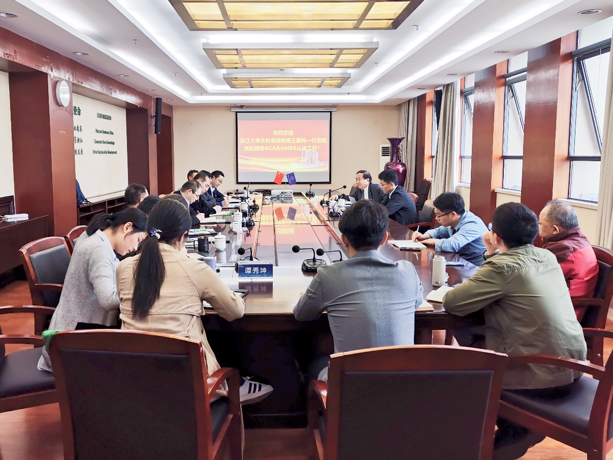 4月28日下午,p站 在经管楼604会议室举行BGA国际认证研讨会。浙江大学文科资深教授、浙江省特级专家、浙江大学管理学院博士生导师、国际丝路创业教育联盟理事长、AMBA&BGA国际认证协会中国顾问与中国区总协调人王重鸣教授莅临指导BGA国际认证相关工作,教务处副处长朱建军、p站 院长周德群、党委书记苏州、学院副院长王子龙、院长助理兼认证办公室主任谢嗣胜、教学办主任田苑娜、MBA教育中心执行主任杜刚以及相关人员参加会议。