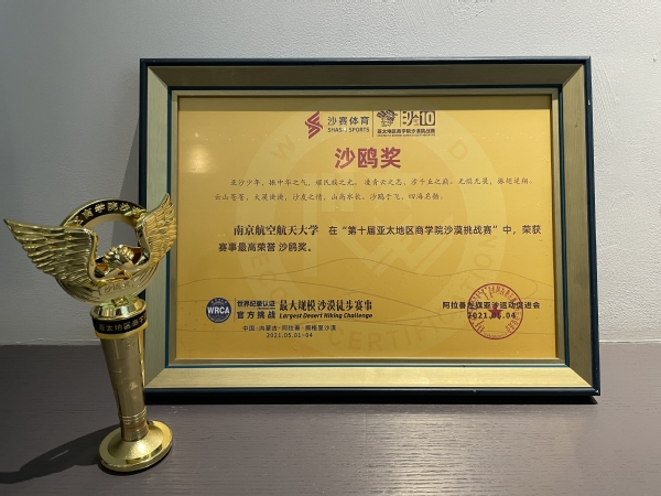 “亚沙赛”于2012年由16所商学院共同发起,每年“五一”期间在内蒙古腾格里沙漠举行,是亚太地区顶级商学院的MBA学员的一项竞技体验式文化赛事。目前参赛院校覆盖中国、新加坡、澳大利亚、英国、美国等国家和地区100多所顶级商学院,成为覆盖地区最广的商学院赛事,今年的“沙10”更被世界纪录(WRCA)官方认证为全球“最大规模的沙漠徒步挑战赛”。南航MBA师生曾在沙4、沙8、沙9比赛中捧回过赛事最高奖项“沙鸥杯”,第十届“亚沙赛”是南航MBA师生第四次捧回沙鸥杯。