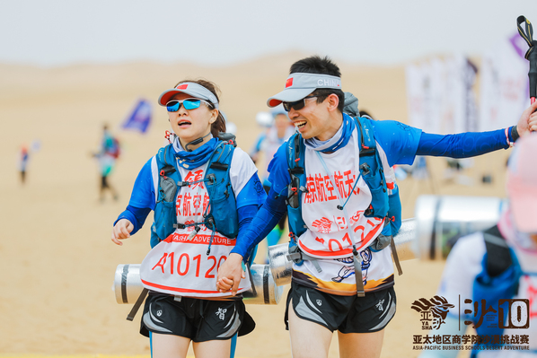 本届“亚沙赛”除了传统的70km完赛要求外,组委会特别设立100km超A赛道。由于完赛要求较高,此组别报名人数寥寥。南航MBA两名2019级学员、沙9队员陆杨、昌逸尘勇闯百公里沙海完赛。