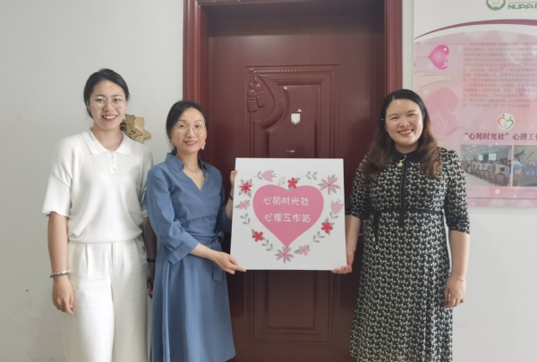 最后,胡心雨带领大家参观了“心苑时光社”心理工作站,p站 划拨506办公室作为心理健康室,为心理健康教育提供场地支持,开设“心灵图书&解压角”,摆放有关心理减压、人际交往、导学关系等方面的心理书籍和减压工具,旨在为学生创造一个舒缓心情的绝佳场所。涂志宏、陈瑜共同为心理工作站以及心灵解压角挂牌。