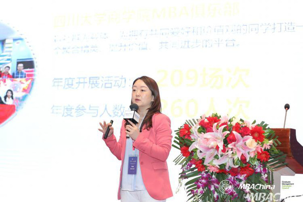 四川大学 MBA教育中心主任李珊以“精耕内涵式品牌宣传”为题,分享了四川大学商学院的宣传经验。一要善用学生活动,进行社群式裂变营销,以社群为载体,为拥有共同爱好和价值观的同学打造一个聚合精英、提升价值、共同进步的平台。二要重视自媒体建设,项目官微文章周均3.44篇,九大专栏持续发力,四川商学院MBA峰值传播力位居全国第四;三要始终以学生需求为本,增强学生认同感。四要持续优化教学质量,树立好口碑。