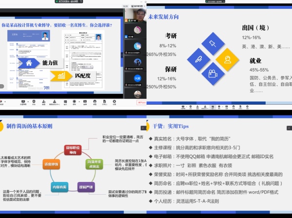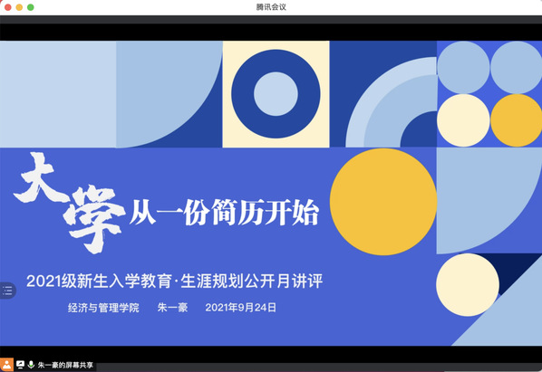 为了帮助2021级新生更好地了解学校、了解专业,为今后的学习和生活打下良好基础,9月24日,p站 2021级本科生辅导员朱一豪以“大学,从简历开始”为主题线上开展了公开月讲评活动,院党委副书记涂志宏、团委书记刘小杨及全体2021级本科生参加了本次活动。