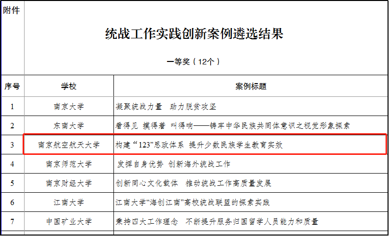 近期,江苏省委教育工委公布了“同心向党•教育有我”统战工作实践创新案例遴选结果,p站 党委报送的创新案例“构建123思政体系 提升少数民族学生教育实效”创新案例获一等奖(全省高校共12项)。