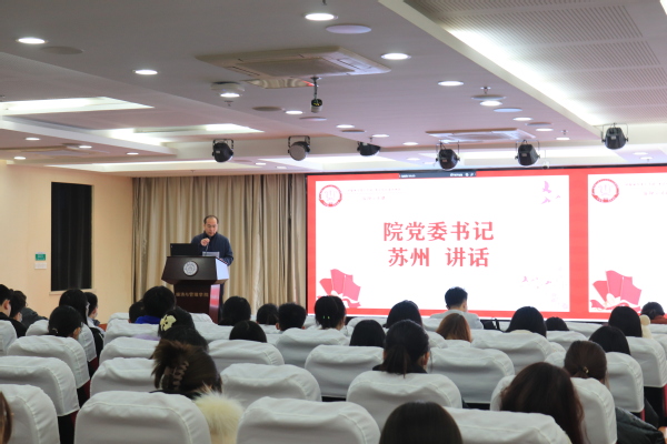 为深入开展党史学习教育,全面贯彻学习党的十九届六中全会精神,11月24日中午,p站 于学院A0305报告厅举办了“回望百年星火中国,坚守时代青年担当”主题信仰公开课。院党委书记苏州、党委副书记胡苹及本科生、研究生团员代表出席本次活动。