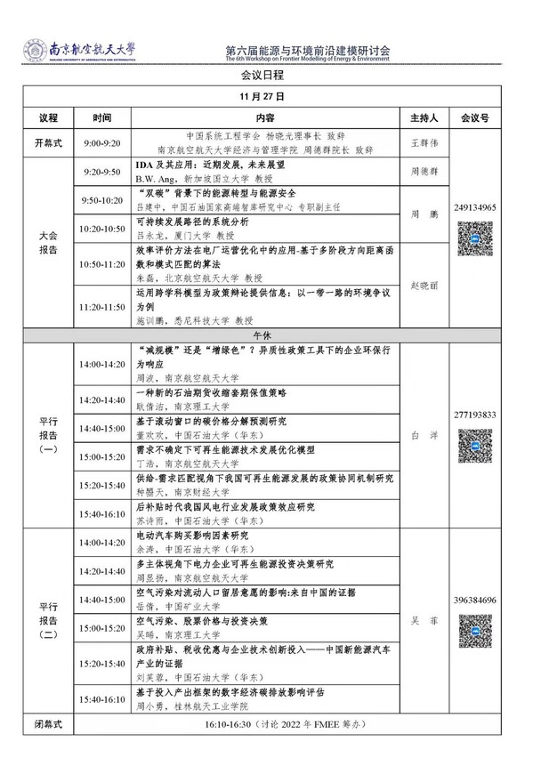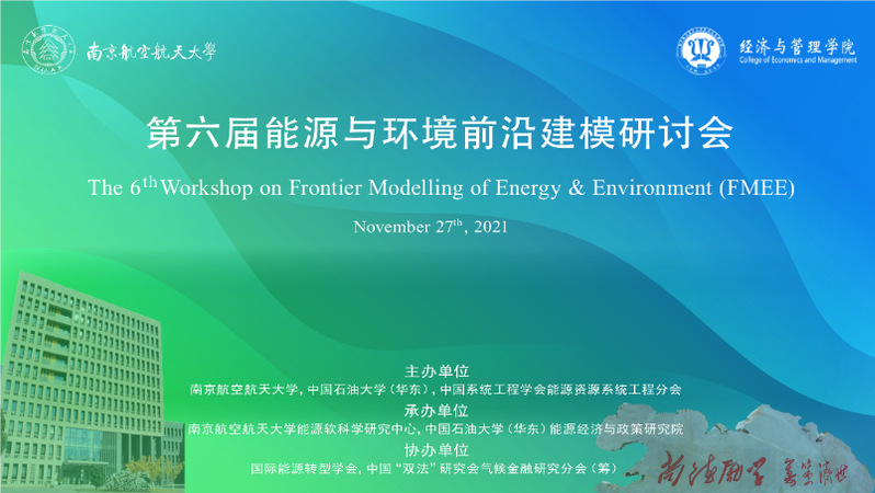 11月27日,第六届能源与环境前沿建模(The 6th Workshop on Frontier Modelling of Energy & Environment, FMEE)研讨会在p站 成功举办。本次论坛由p站 、中国石油大学(华东)和中国系统工程学会能源资源系统工程分会共同主办、p站 能源软科学研究中心和中国石油大学(华东)能源经济与政策研究院承办,国际能源转型学会、中国优选法统筹法与经济数学研究会气候金融分会(筹)协办。会议得到《中国管理科学》、《环境经济研究》和《中国石油大学学报(社科版)》的支持。