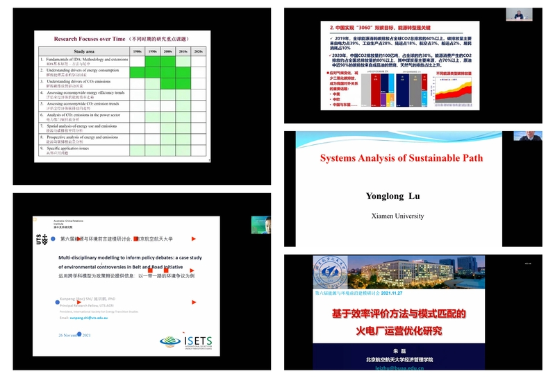 本次研讨会分为上半场和下半场,上半场大会报告由p站 院长周德群教授、中国石油大学(华东)经济管理学院院长周鹏教授和中国石油大学(华东)经济管理学院赵晓丽教授主持。新加坡国立大学B.W.Ang教授作题为“IDA及其应用:近期发展,未来展望”的学术报告,全面系统地回顾了IDA方法的研究和利用情况,并提出未来可以开展的研究方向。中国石油国家高端智库研究中心吕建中教授作题为“‘双碳’背景下的能源转型与能源安全”的学术报告,深入解读了能源转型的格局和能源安全的形势,分析了国际油气市场的变化趋势,并提出了一系列值得重视的问题。厦门大学吕永龙教授作题为“可持续发展路径的系统分析”的学术报告,从多维度、多视角探究了可持续发展路径,体现了系统思维在可持续发展问题研究中的适用性。悉尼科技大学施训鹏教授作题为“运用跨学科模型为政策辩论提供信息:以一带一路的环境争议为例”的学术报告,指出一带一路导致环境恶化没有实证证据,通过能源贸易和区域合作,一带一路有能力促进环境的改善。北京航空航天大学朱磊教授作题为“基于效率评价方法与模式匹配的火电厂运营优化的研究”的学术报告,针对火电厂运营中面临的现实问题,创新性地构建了能源效率评价方法,为发电企业能源效率的提升提供了有效指导。