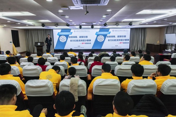2022年1月15日下午,p站 亚沙智行队参加第十一届亚太地区商学院沙漠挑战赛的启动仪式在p站 学术报告厅隆重举行。