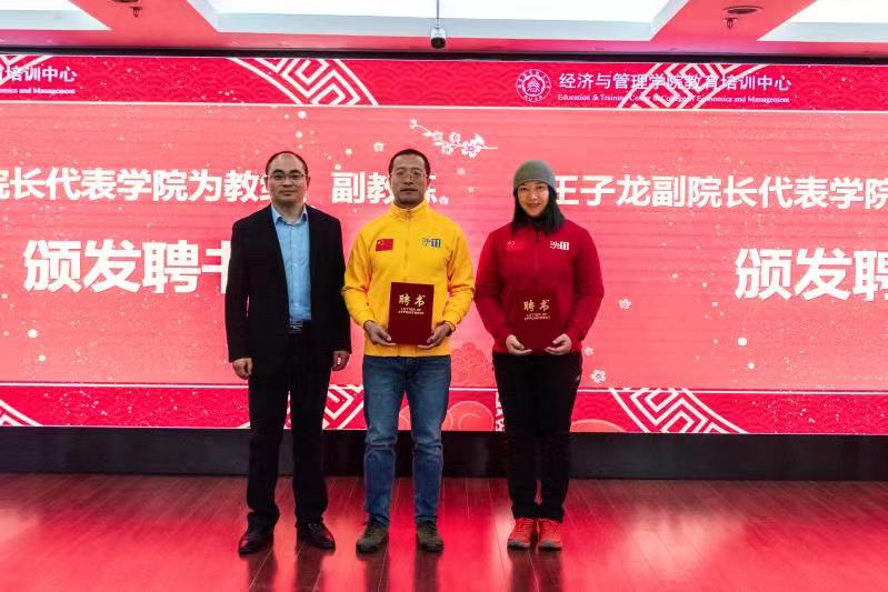 在聘书颁发仪式上,由王子龙副院长为汪文君、宋伟颁发了总教练、副教练聘书。