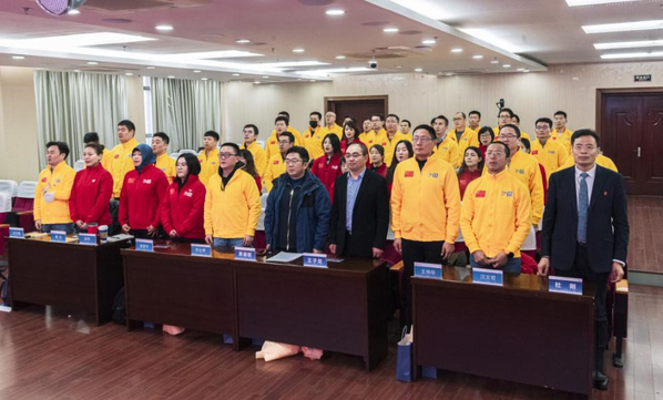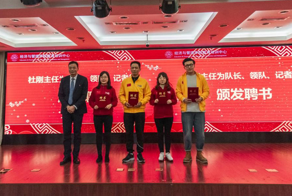杜刚主任为队长朱志祥、领队许正蓓、记者王一鸣、佘开妍颁发聘书