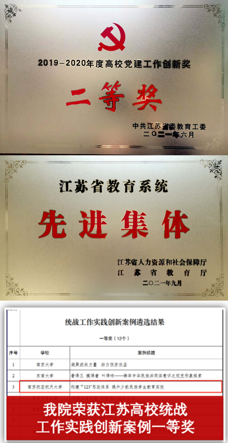 2021年10月,江苏省委教育工委公布了“同心向党·教育有我”统战工作实践创新案例遴选结果,p站 党委报送的创新案例“构建123思政体系提升少数民族学生教育实效”创新案例获一等奖(全省高校共12项)。