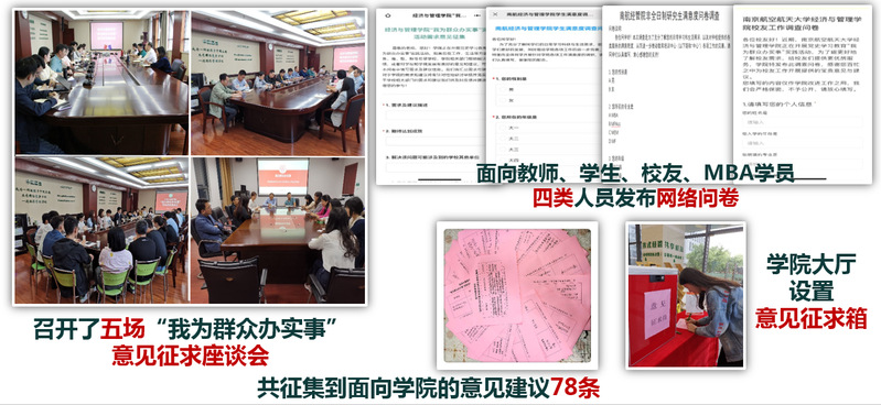 开展“我为群众办实事”活动,分别面向专任教师代表、行政管理人员代表、学生代表、MBA学员代表、毕业生研究生代表召开了五场“我为群众办实事”意见征求座谈会,面向教师、学生、校友和MBA学员四类人员发布网络问卷,在学院大厅设置意见征求箱等方式,共征集到面向学院的意见建议78条,召开2次党委会会议,根据办实事“项目清单”,抓落实、抓推进、抓检查,截止年底,78项办实事项目全部完成。暑期开展了学院历史上最大规模的党员集训,组织全体党员教工和民主党派代表前往浙江大学、嘉兴南湖开展了为期5天的“学党史、悟初心、提能力”专题培训,引导广大教师党员坚定理想信念,提升事业发展能力,推动党史学习教育走深走实。
