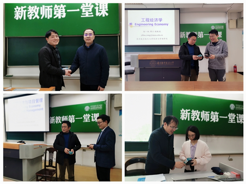 为增强新入职教师对于职业的责任感和使命感,3月7日和3月8日,学院党委书记苏州、院长周德群、副院长邓晶、教学办与学工办相关教师依次为丁浩、杨一帆、董文杰、王筱纶四位新教师进行了新教师“第一堂课”引荐仪式,代表学院全体教师及同学向四位新教师的到来表示热烈的欢迎,并向同学们介绍新教师的个人履历和专业研究等情况。