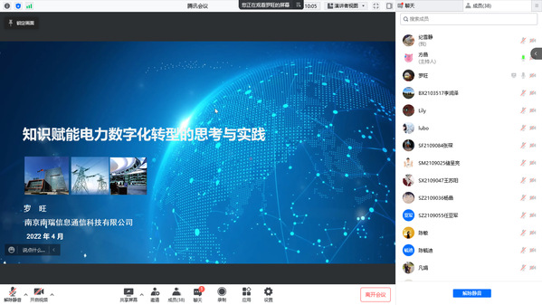 4月22日下午,南瑞集团正高级工程师,江苏省产业教授罗旺应p站 管理科学与工程系、以及信息管理与电子商务研究所的邀请,通过腾讯会议作了“知识赋能电力数字化转型的思考与实践”报告,本次报告由米传民教授主持,部分硕、博士研究生参加此次报告。