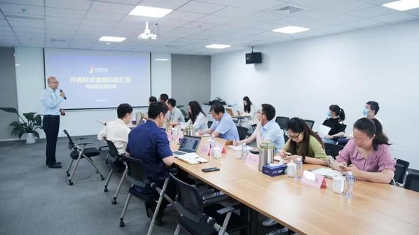 周治翰代表开鑫科技对p站 师生的到来表示热烈欢迎。张宁介绍了开鑫科技的发展历程,以及在供应链金融科技方面的技术创新和实践案例。