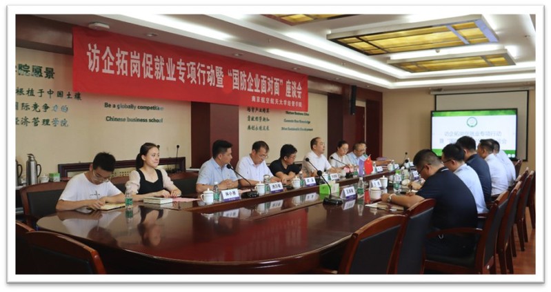 为深入贯彻学校访企拓岗促就业专项行动暨“国防企业面对面”工作要求,了解行业发展趋势,调研企业人才需求情况,广泛拓展就业岗位,7月13日下午,p站 组织访企拓岗促就业专项行动暨“国防企业面对面”座谈会。参加本次座谈会的有航天晨光人力资源部部长孟凡刚、熊猫电子人力资源部部长马培江、金城集团人力资源部部长丁冬梅、中科曙光南京研究院总经理王海荣、航天长峰江苏公司总经理刘帆、江苏航天龙梦信息技术有限公司总经理王剑秋、南京机电液压工程研究中心人力资源部副部长王鹏,以及学院领导班子成员、MBA主任杜刚和辅导员代表。座谈会由苏州书记主持。