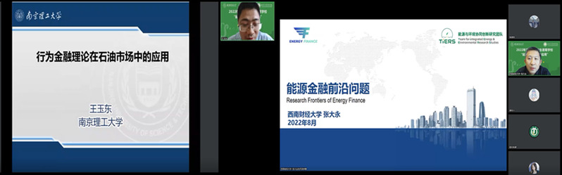 8月15日,南京理工大学p站 副院长王玉东教授围绕“行为金融理论在石油市场中的应用研究”主题进行授课,介绍了行为金融的相关理论,分析了行为金融理论在石油市场以及其他能源市场中的相关应用。西南财经大学经济与管理研究院张大永教授围绕 “能源金融前沿”主题进行授课,阐述了能源金融的相关概念,讲解了能源的定价机制,介绍了能源与公司金融的关系,提出了能源金融的前沿方向。