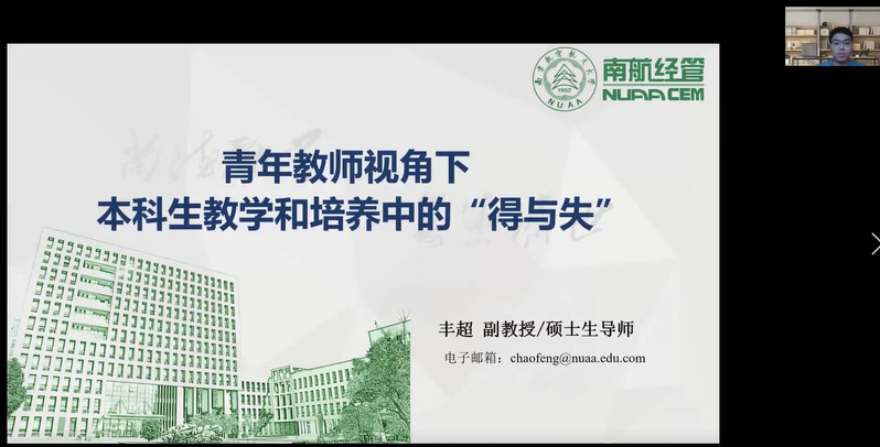 会议包含三个分支主题的报告。特邀嘉宾河海大学李光明教授详细介绍了市场营销专业重点教材的申报与建设,p站 丰超和宋连莲两位老师分别介绍了青年教师视角下本科生教学与培养中的“得与失”、师生互动提问式教研模式与开展方案,从市场营销专业的教学和教研角度分享了专业育人方案。系列主题汇报的内容各有侧重点,干货满满,吸引了北京工商大学、西南政法大学、河海大学、淮阴师范学院、南京工业大学等多所兄弟院校的师生参与。