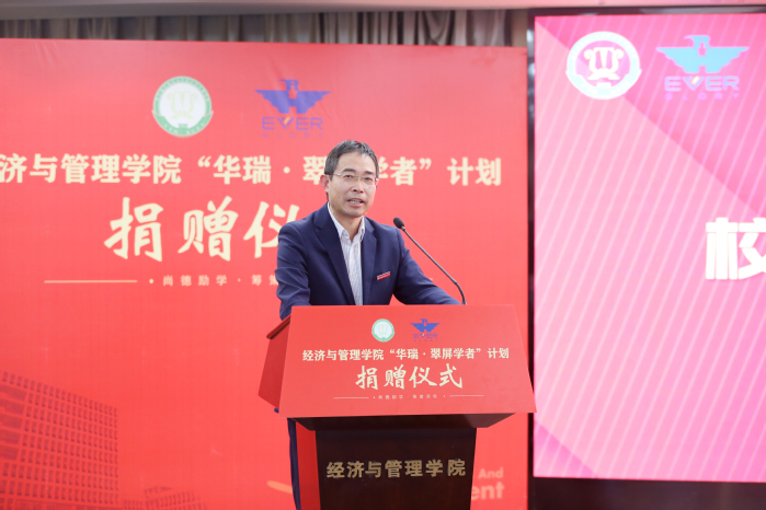 康宜华院友对学校和学院的邀请表示感谢,对能为母院发展助力感到欣慰和自豪。他以亲身经历激励青年学者们要树立远大理想,勤勉敬业,在实干中实现自己的人生价值。他强调,科技是第一生产力、人才是第一资源、创新是第一动力,要有“让世界一流人才为我所用”的眼光,实现人才“量的合理增长,质的稳步提升”。他表示,捐赠是有限的,华瑞集团立足长远,正在和学院共同探索教育培训合作新机制,瞄准引进世界一流人才,增强学院持续造血功能,形成更大的高层次人才蓄水池。